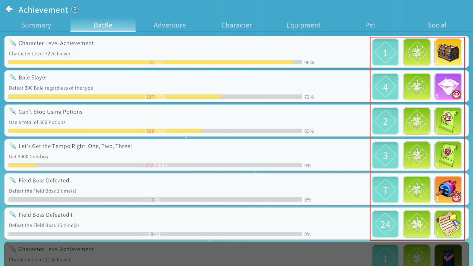 The Achievement system allows you to review accomplishments earned while adventuring throughout Shiltz and experiencing various content, and to receive rewards accordingly.