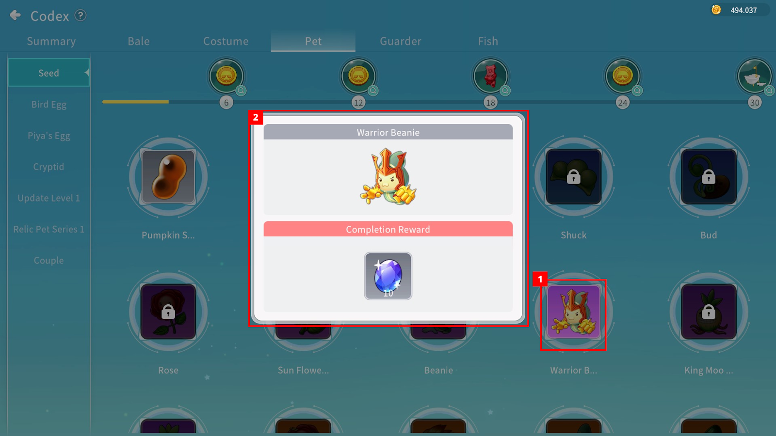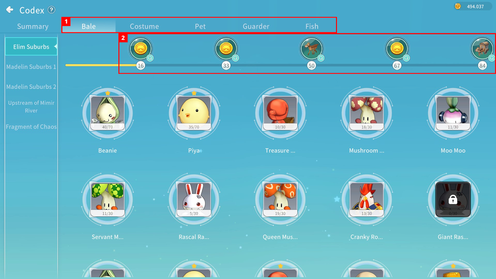 Costume / Pet / Guarder Codex – Items you have obtained are unlocked.