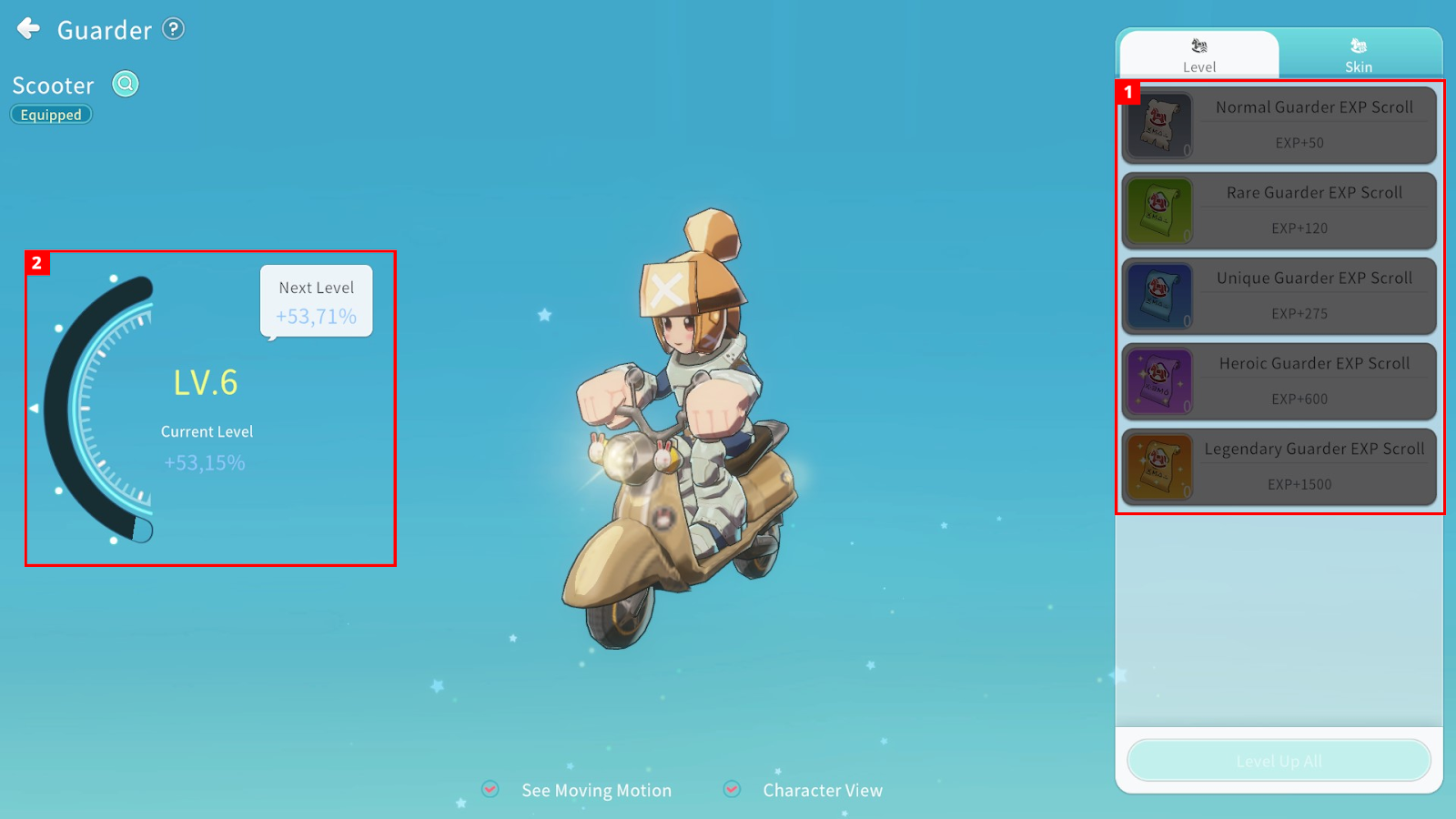 ① You can use Guarder EXP Scrolls to increase the Guarder Level. The maximum Guarder Level is limited according to your character Level.