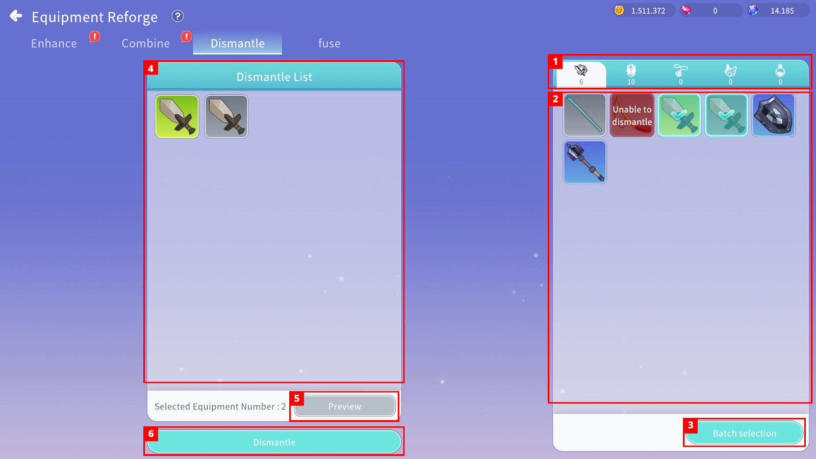 ② You can check Equipment eligible for Dismantling.