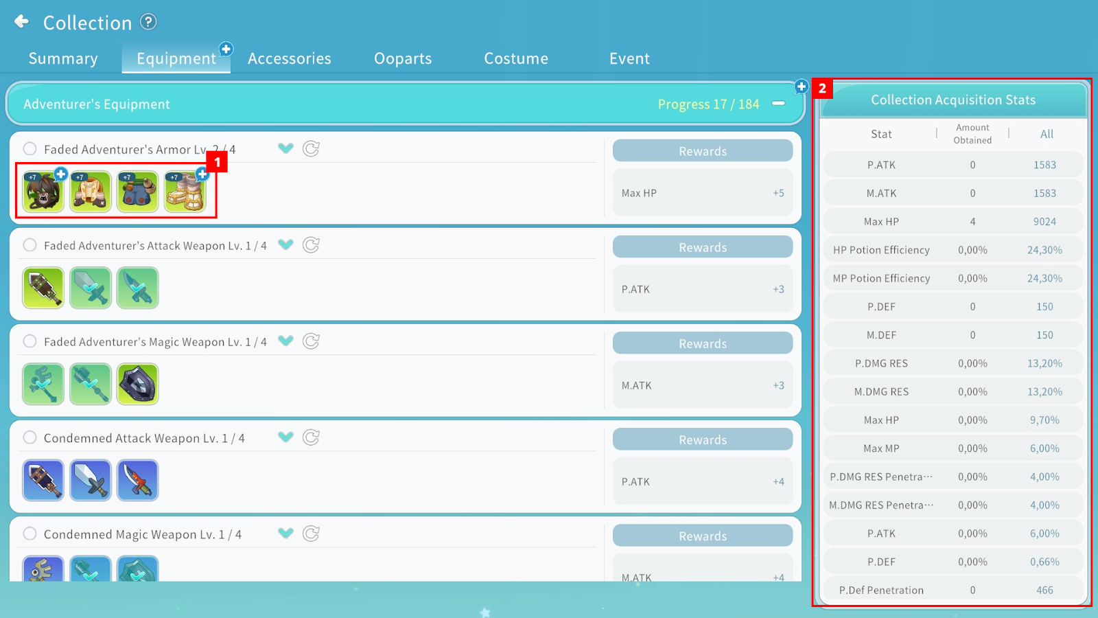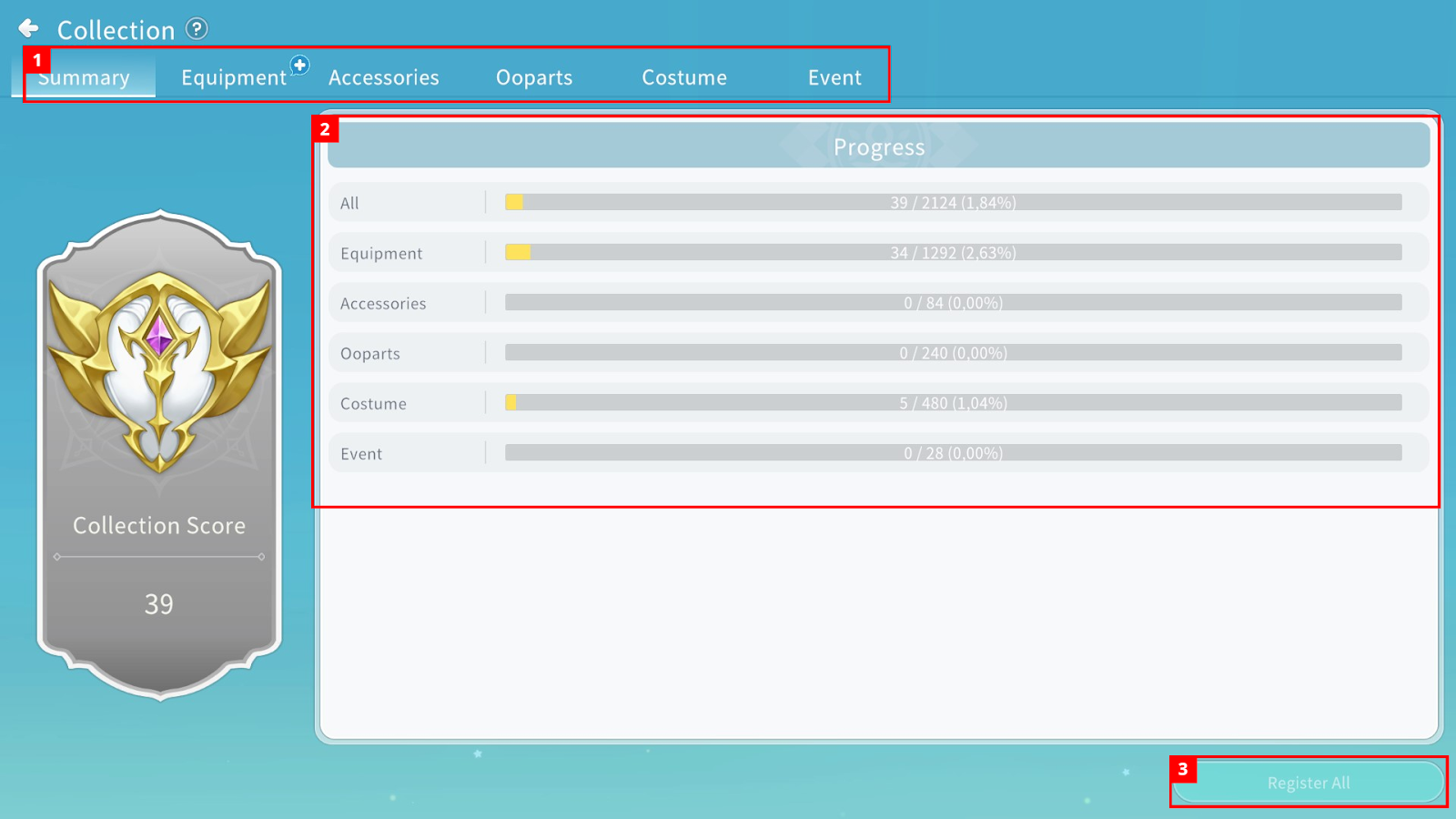 The Collection system allows you to register acquired items and obtain special rewards.