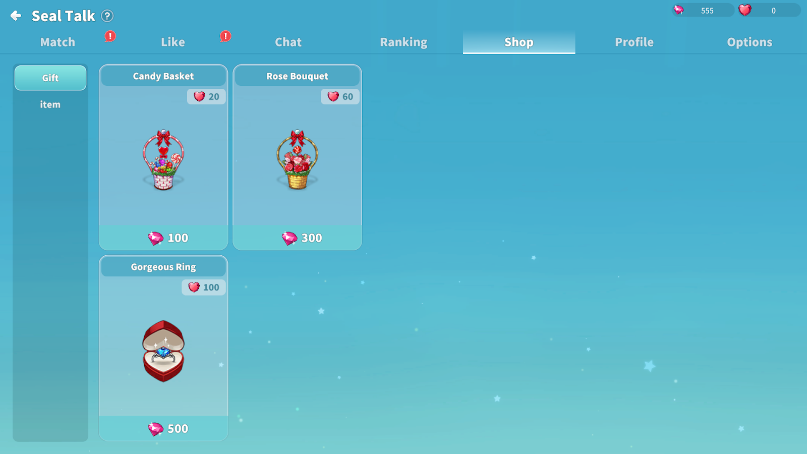 In the Seal Talk Shop, you can purchase gifts to send to adventurers.