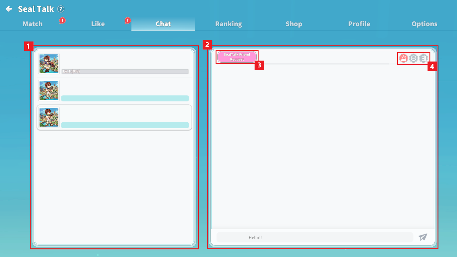 Seal Talk is a social feature in Seal M that allows you to find like-minded adventurers through matching, and build close relationships by exchanging Likes, conversations, and gifts.