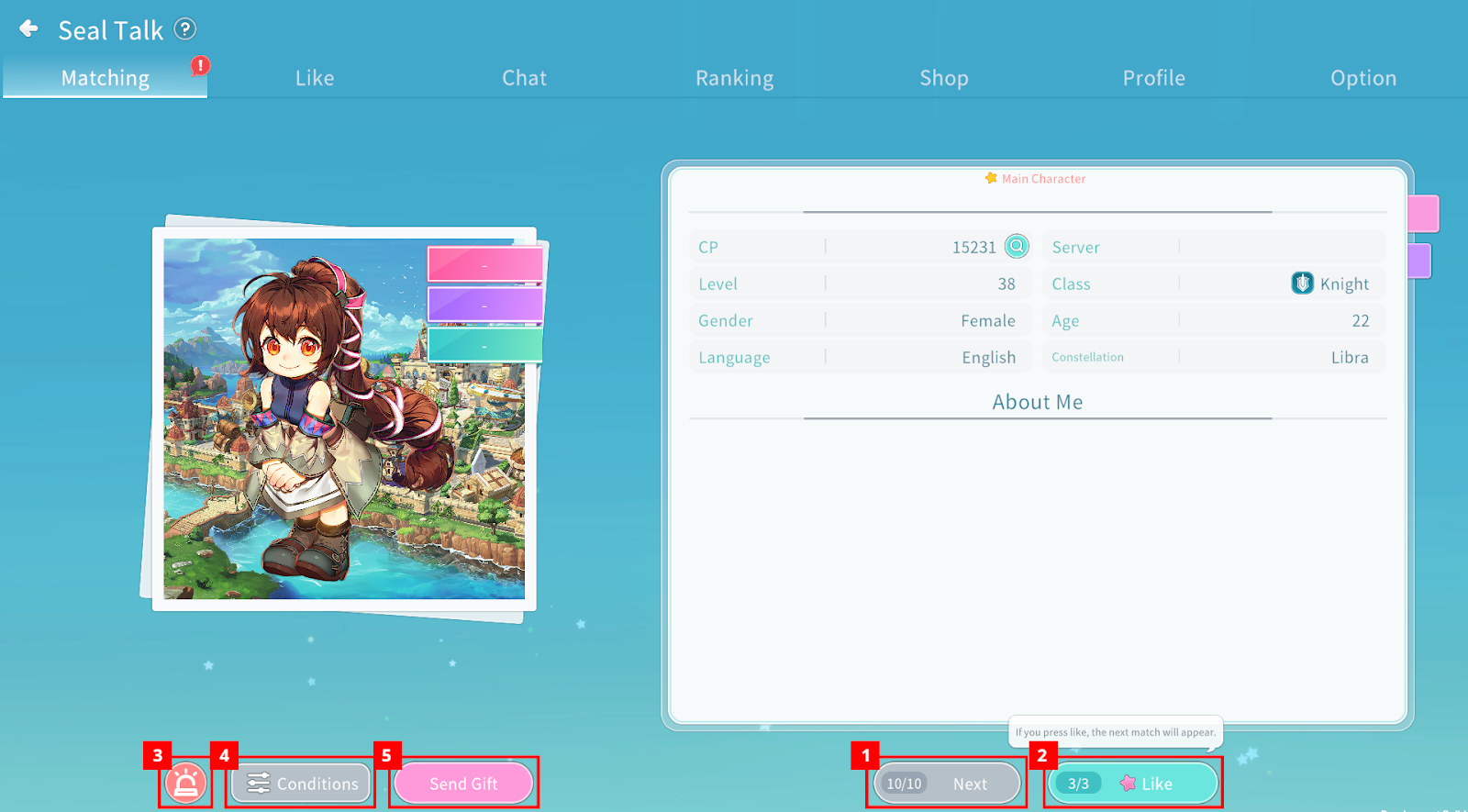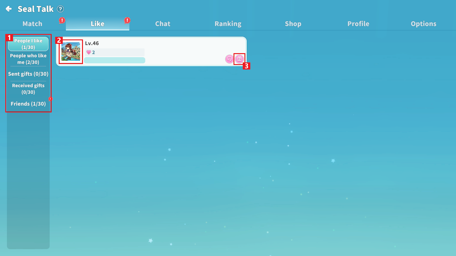 ② You can send a Like to the matched adventurer. (Unlimited with Premium.)