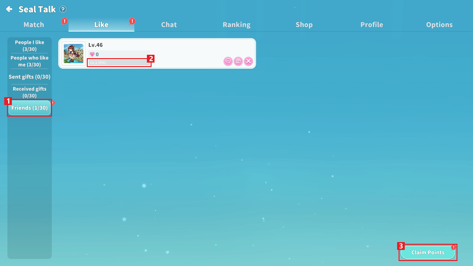 ③ You can earn Seal Talk Points the next day based on the number of requests your friend completes.