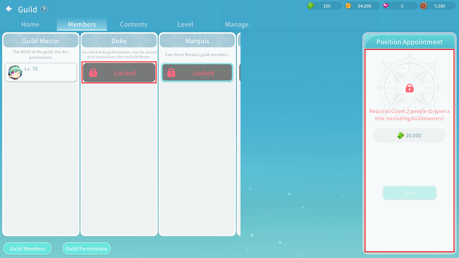 When the position unlock conditions are met, you can unlock the position by spending the required Guild funds.