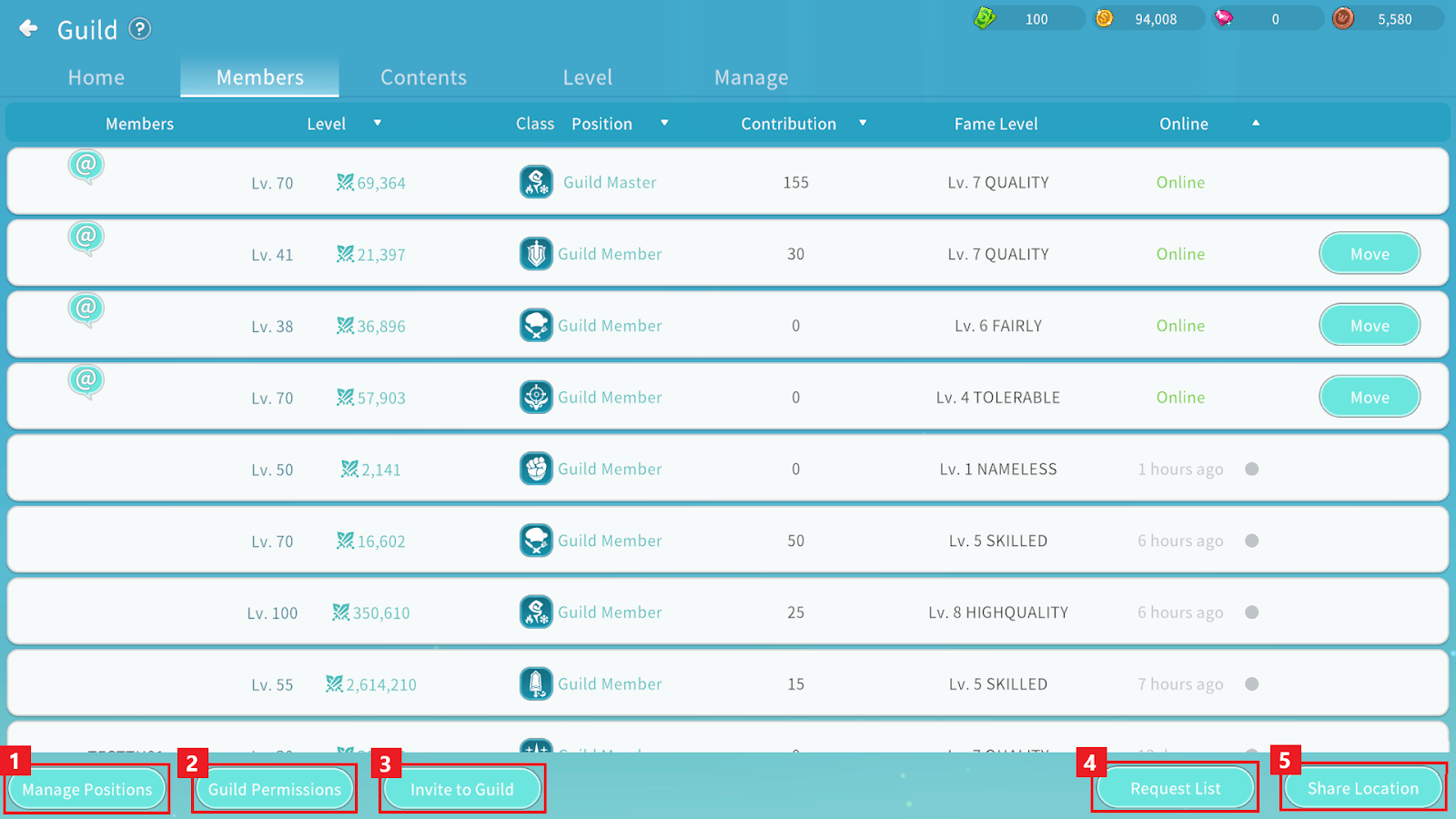 Guild Level 3 | Guild Level 2 | Guild Level 2 | Guild Level 2 | Guild Level 3 |