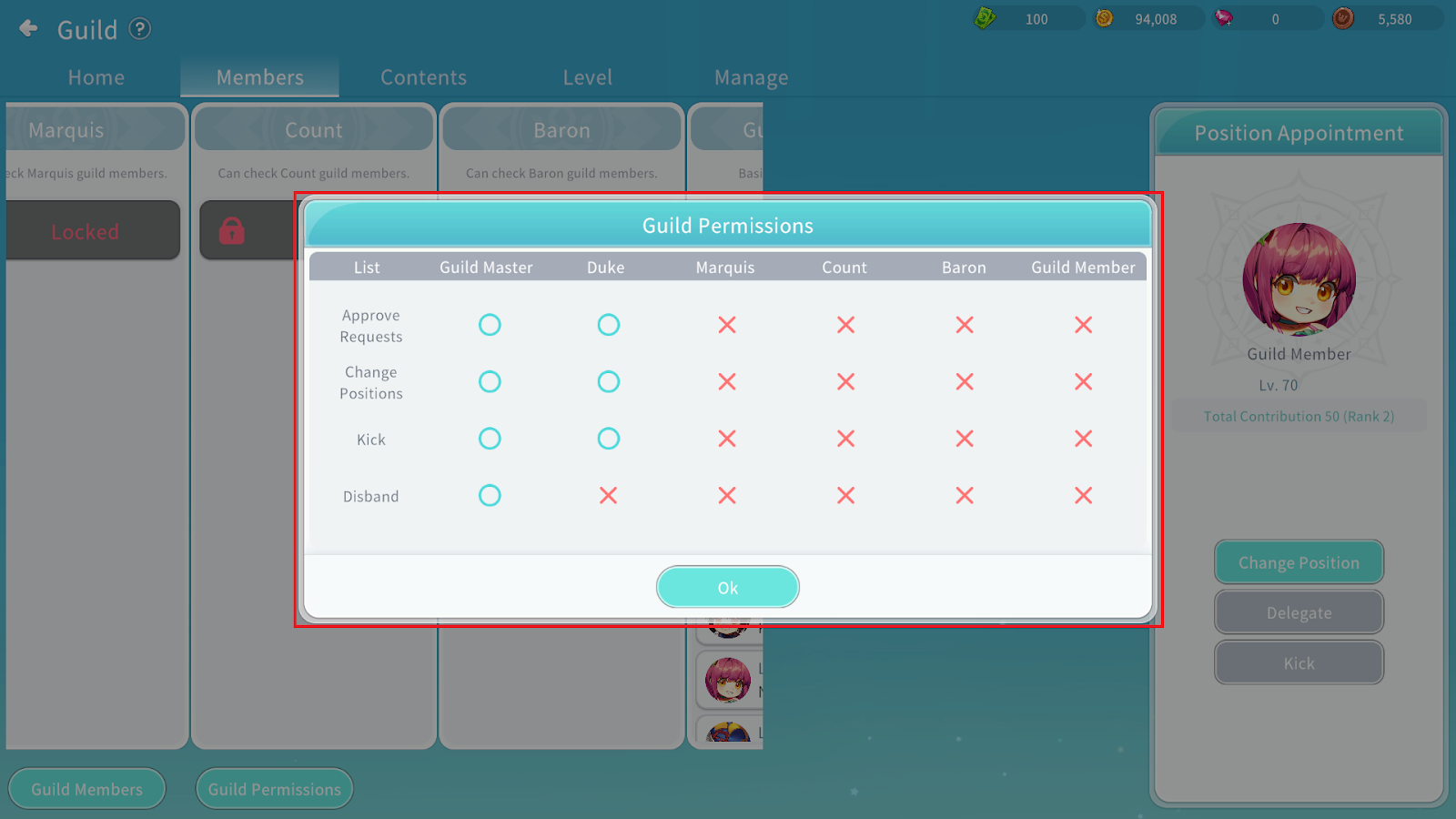 Guild positions include: Guild Member, Baron, Count, Marquis, Duke, and Guild Master.