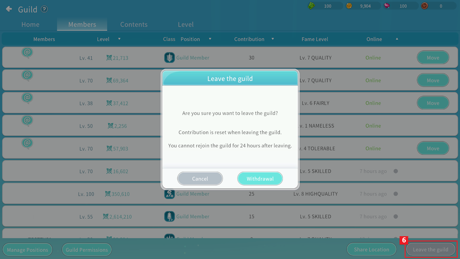 Guild members can use the Leave Guild button to withdraw from the Guild.
