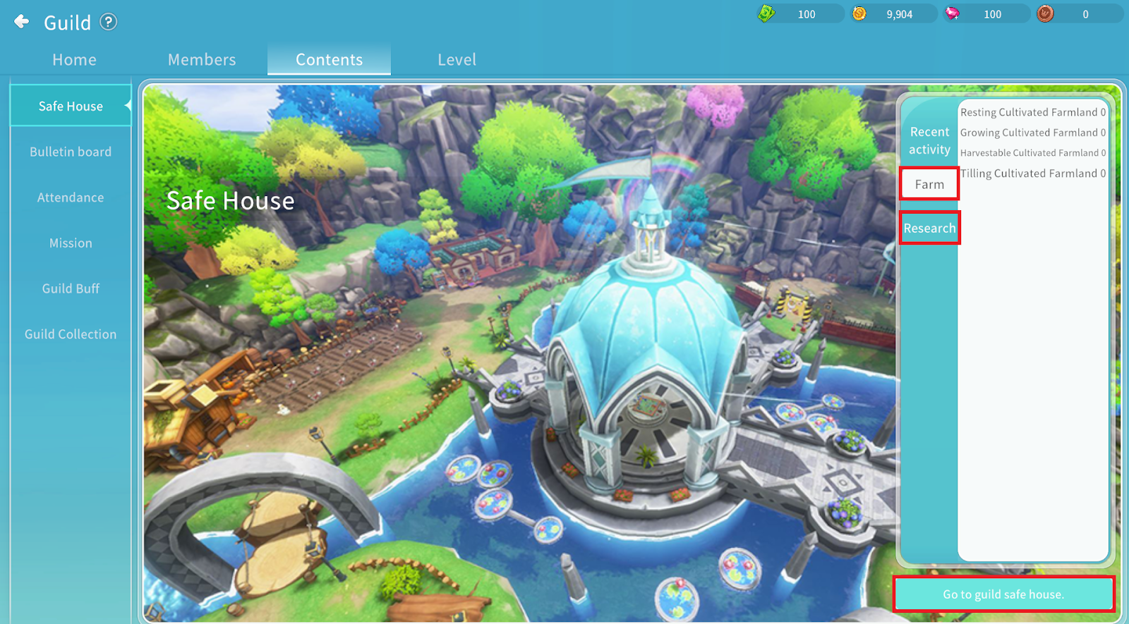 You can move to the Guild Safe House to carry out Farming and Research activities.