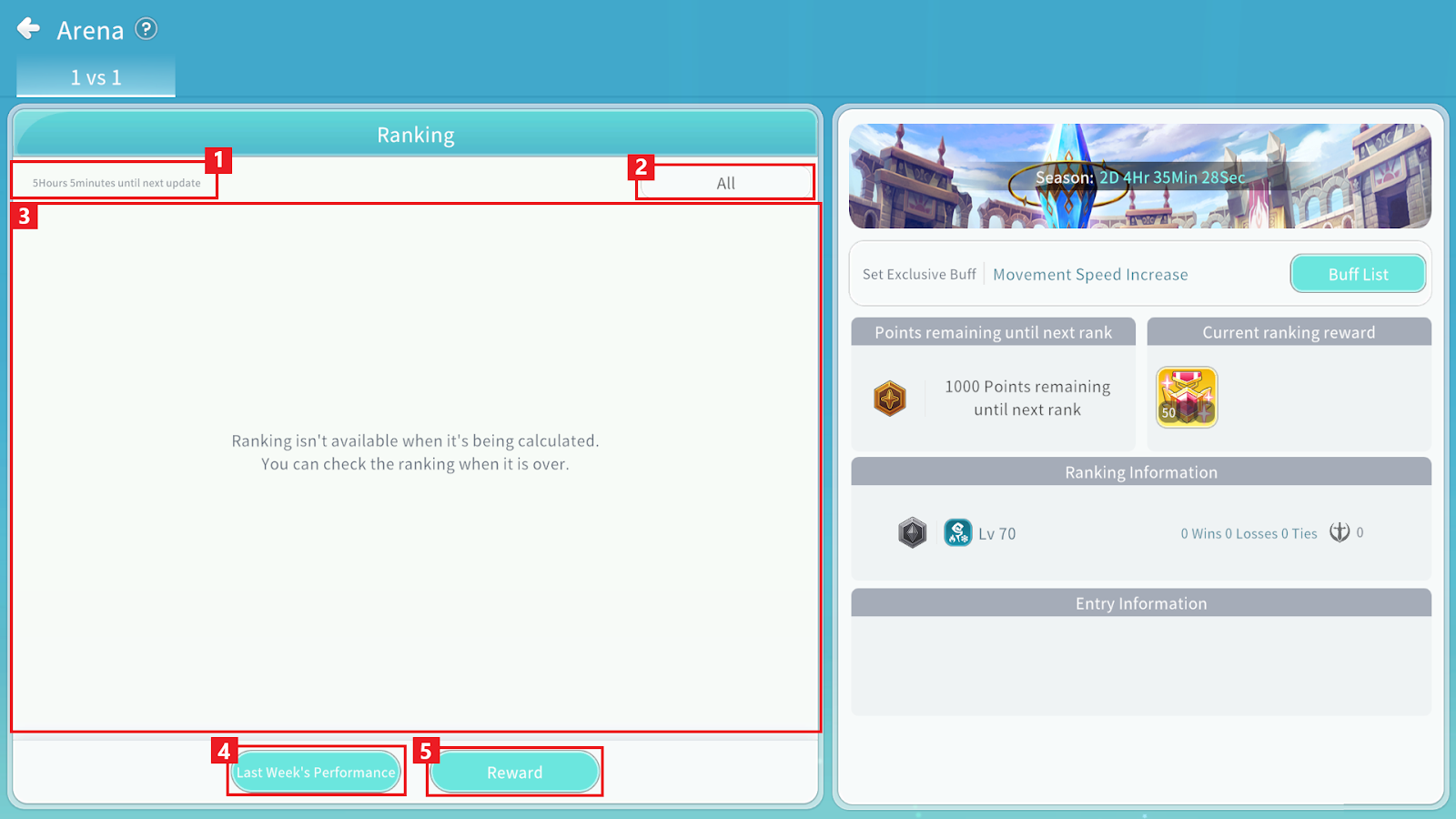 ※ Inside the Arena, entry and use of Party, Couple, Rift, Dungeon, Achievements, and Guild features are not allowed.