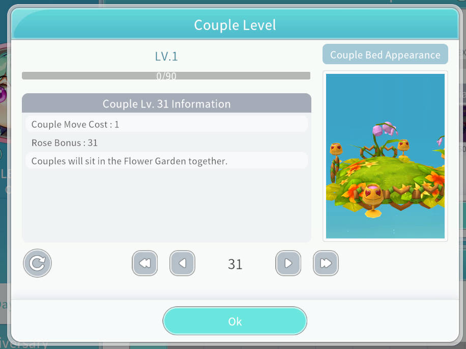 ③ Depending on Couple Level, Rose bonus acquisition increases, and the Couple sleeping motion changes.