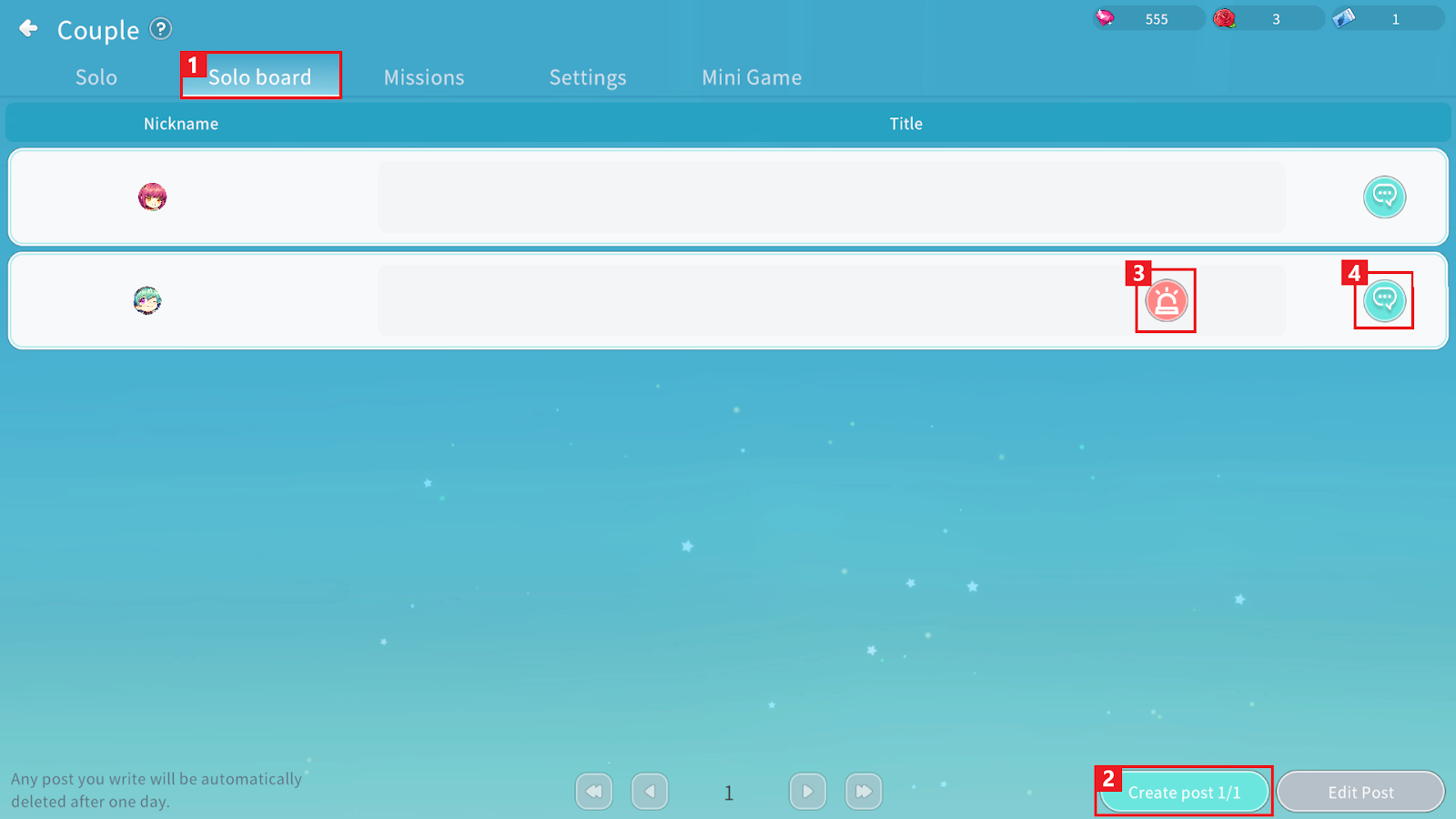 ※ Posts on the Solo Board are automatically deleted after one day.