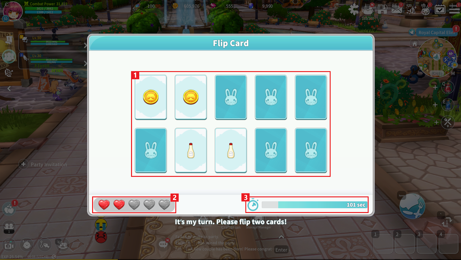 ① When the gauge is fully filled, rewards can be obtained. Both partners must participate to complete the gauge.
