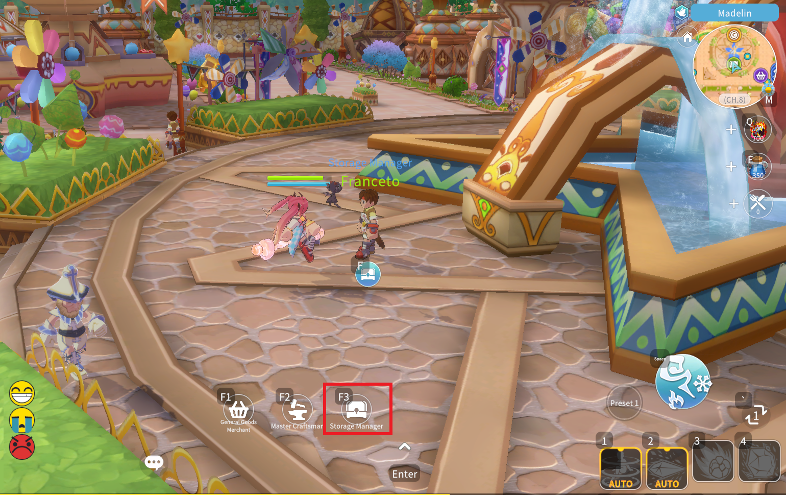 If you have items you are not currently using or if your Bag slots are full, you can store items in the Storage.