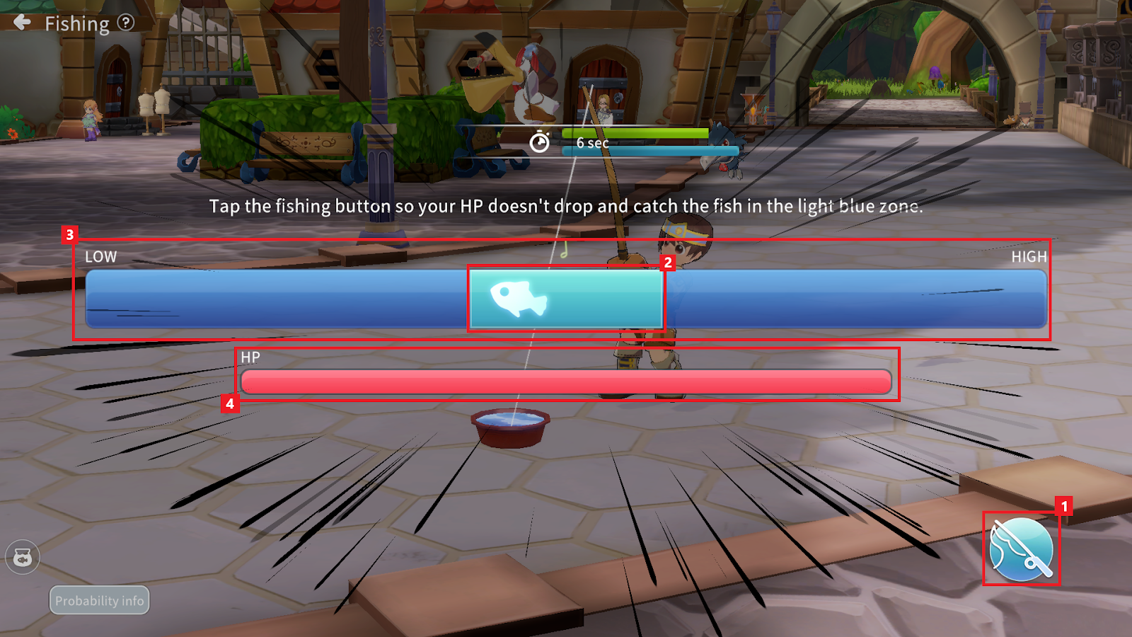 ④ If HP does not reach 0 within the time limit, fishing succeeds.