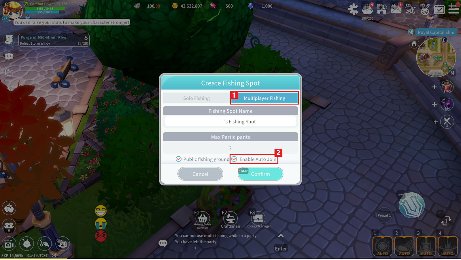 ② If Auto-Join is enabled, any player can join the created Party Fishing Spot.