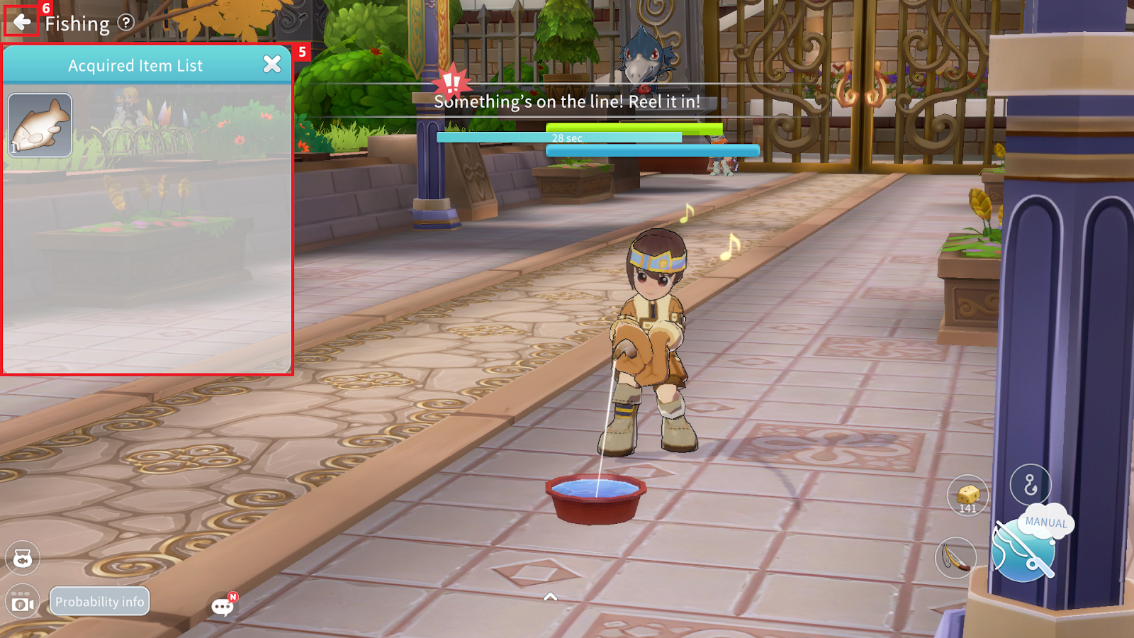 If you successfully complete the mini-game during manual fishing, you will obtain rewards.
