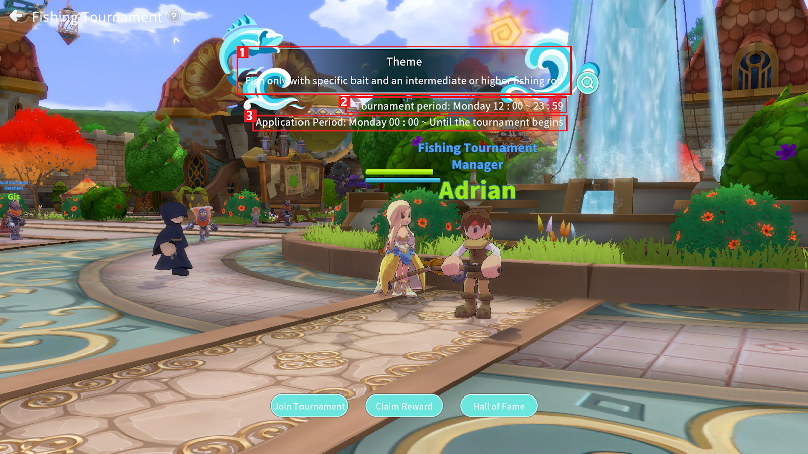 You can participate through Fishing Tournament Manager NPC Adrian in the capital city of Elim.
