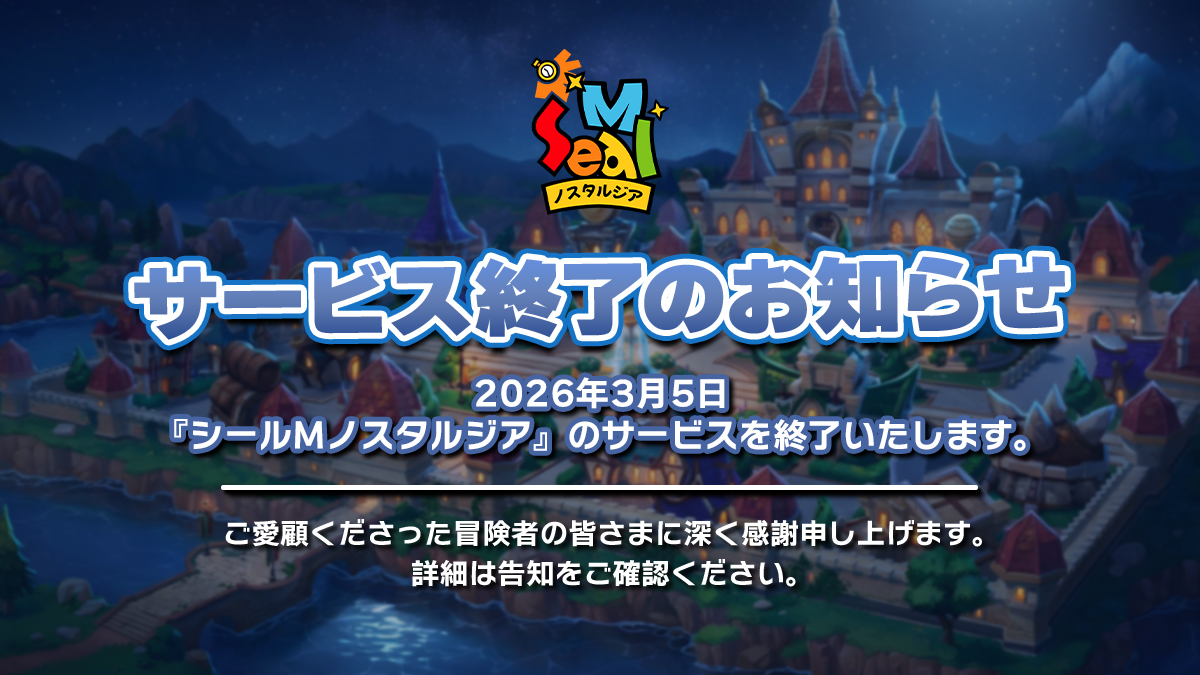 これまで『シールMノスタルジア』をご愛顧くださった冒険者の皆さまに心から感謝申し上げます。