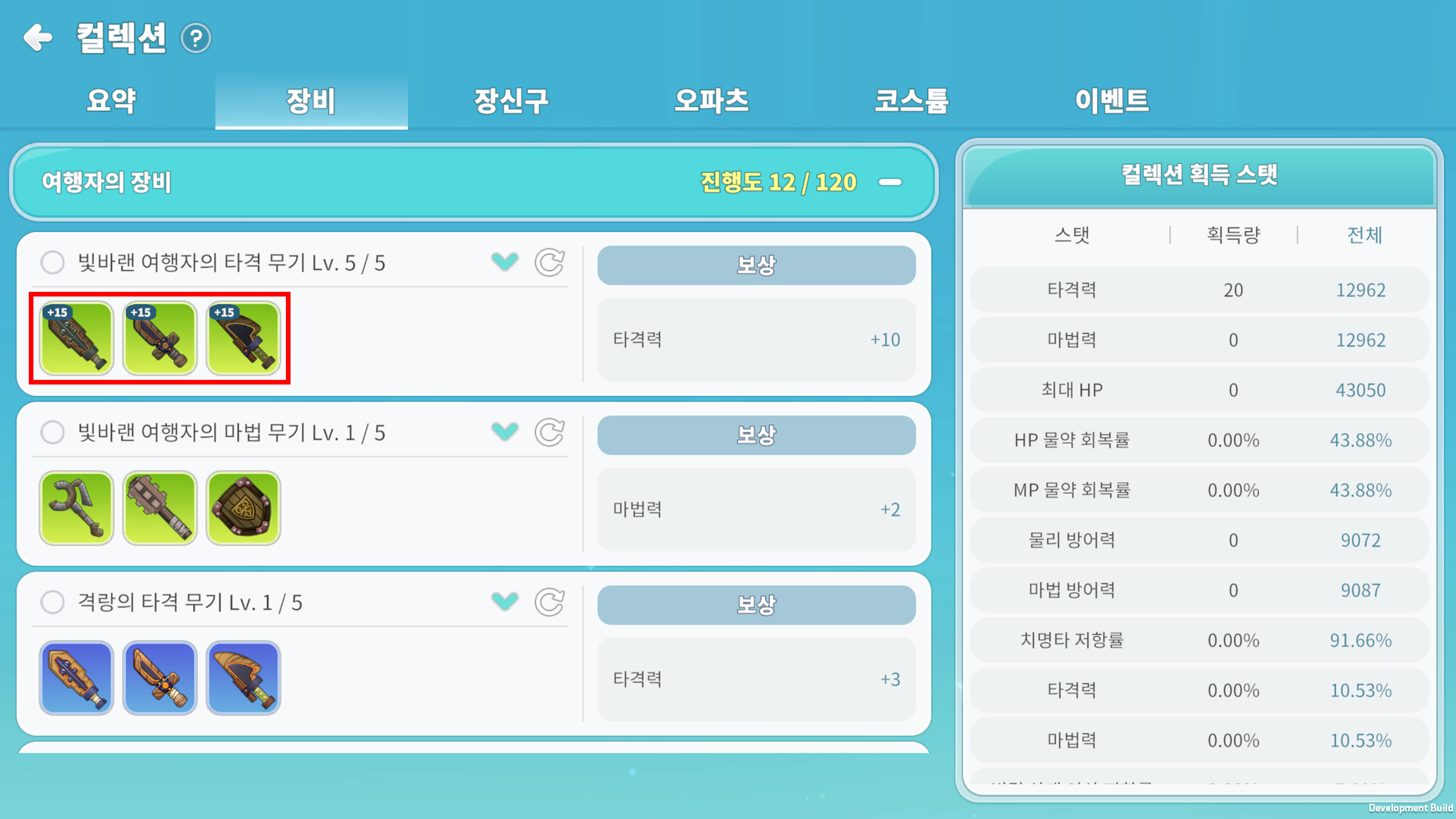 - 기존 100레벨 이하 장비 컬렉션에 15강화 단계 장비를 소모하여 완성할 수 있는 컬렉션이 추가됩니다.