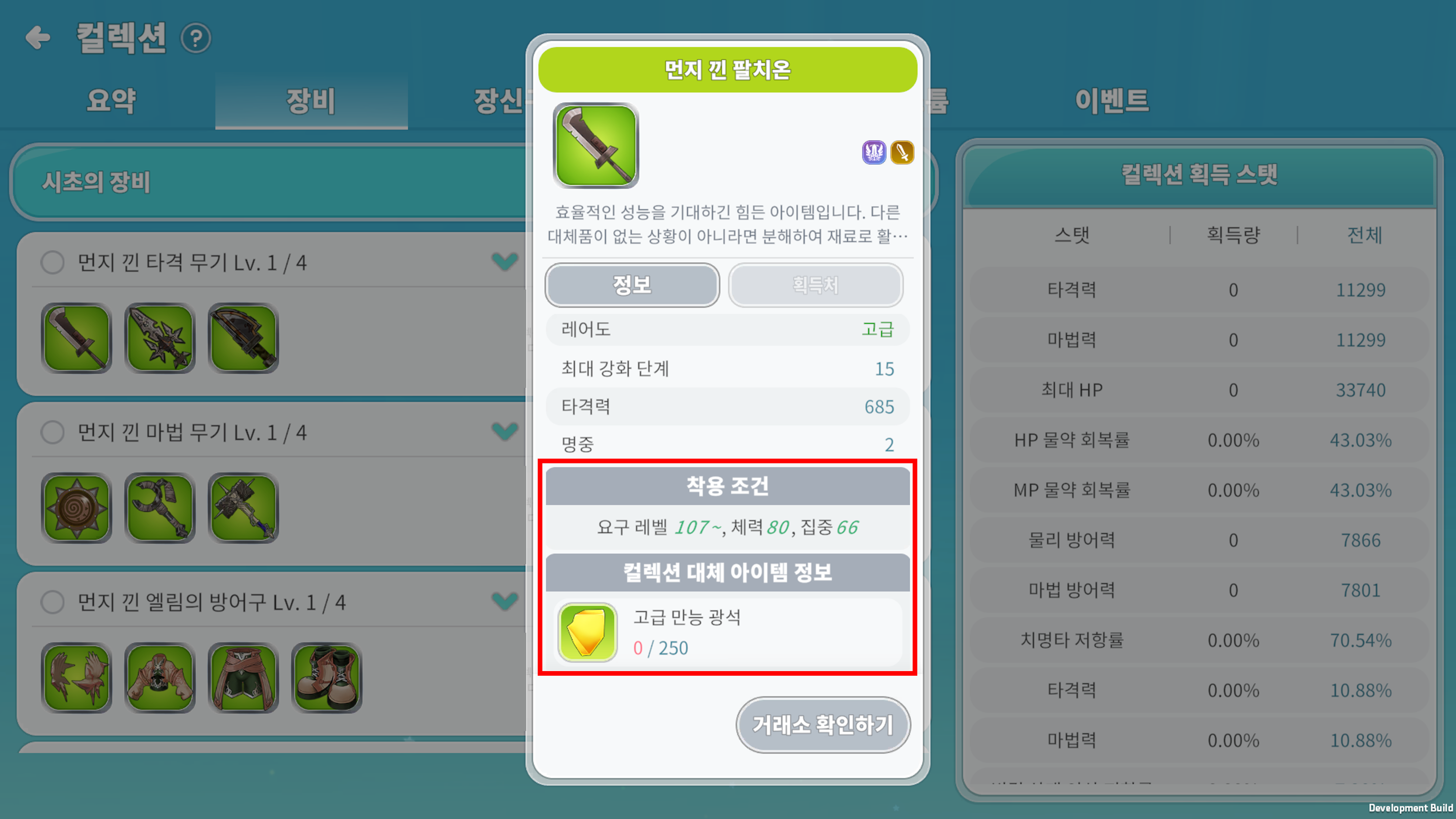 - 현자의 탑 21~25층의 미션 보상을 통해 획득 가능한 뒤틀린 장비를 소모하여 완성할 수 있는 컬렉션이 추가됩니다.