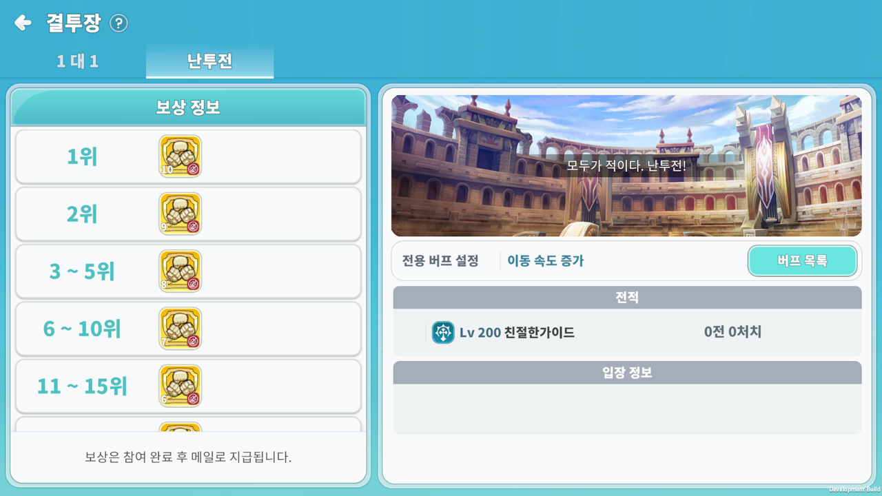 ※ 결투장 내에서는 파티, 커플, 균열, 인스턴스 던전, 현자의 탑, 업적 기능, 길드 등 입장 및 이용이 불가합니다.