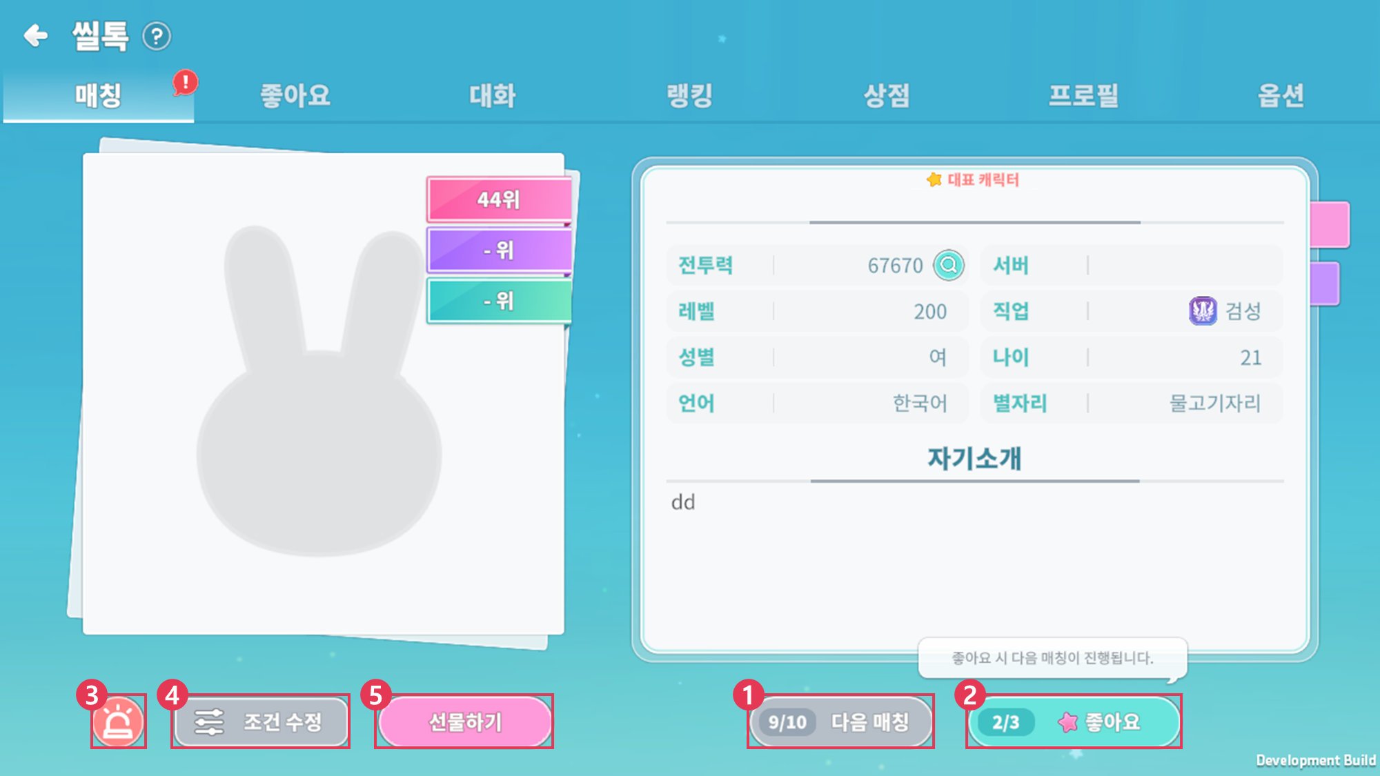 ② 매칭된 모험가에게 ‘좋아요’를 보낼 수 있습니다. (프리미엄 사용 시, 무제한)