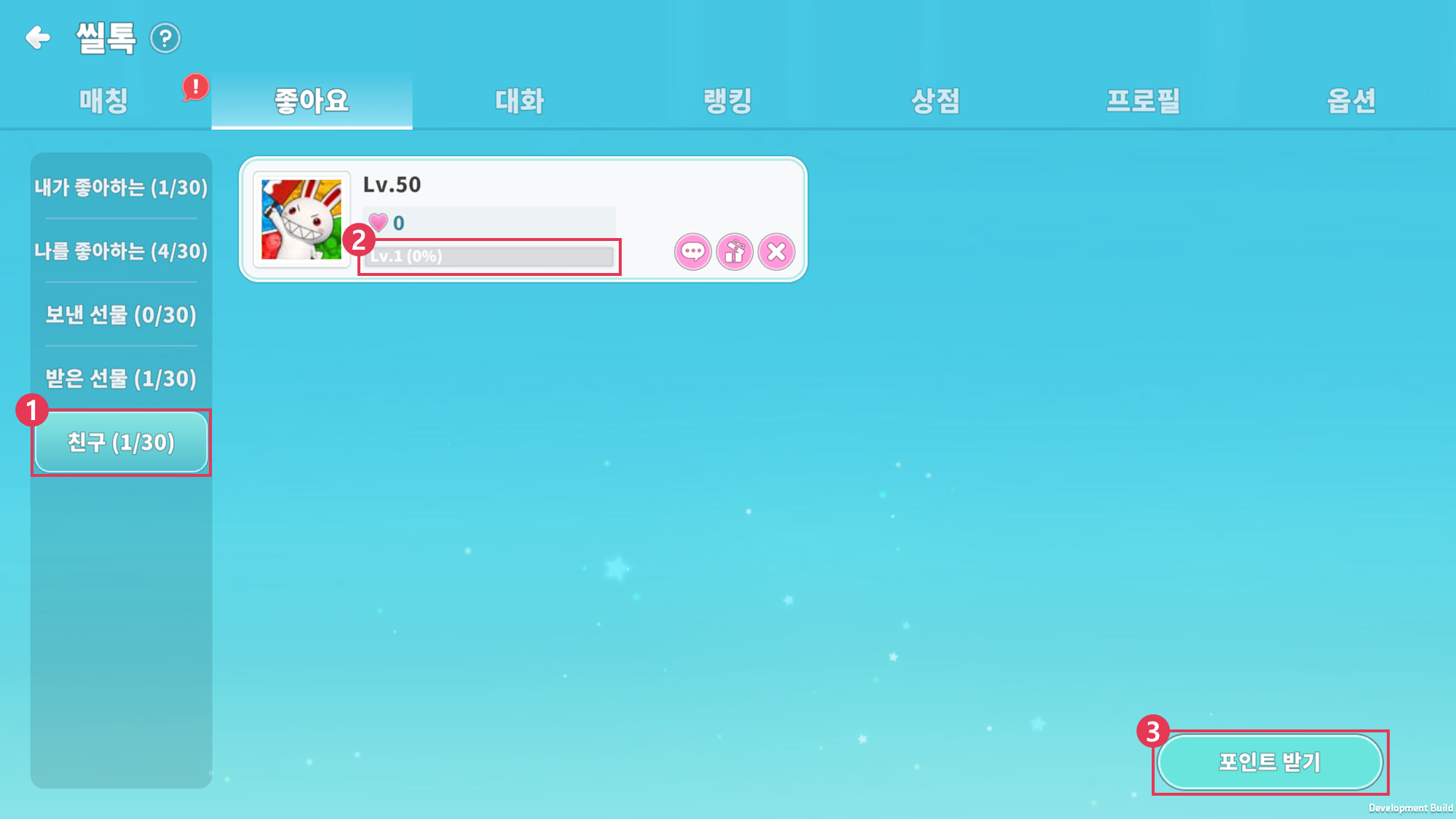 ② 친구와의 대화 및 선물하기를 통해 '마음 포인트'를 획득할 수 있습니다.