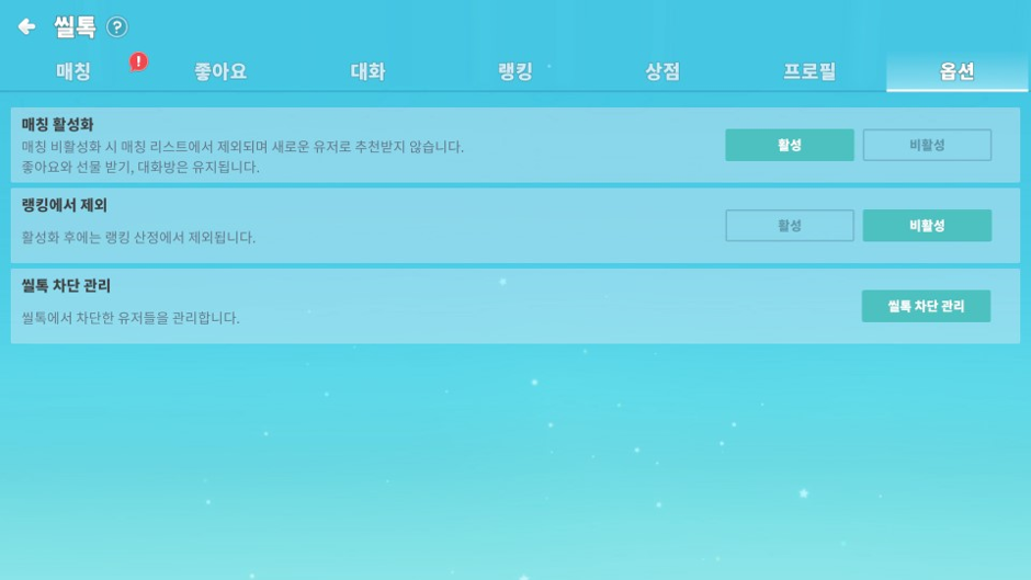 씰톡과 관련된 다양한 설정을 조정할 수 있습니다.