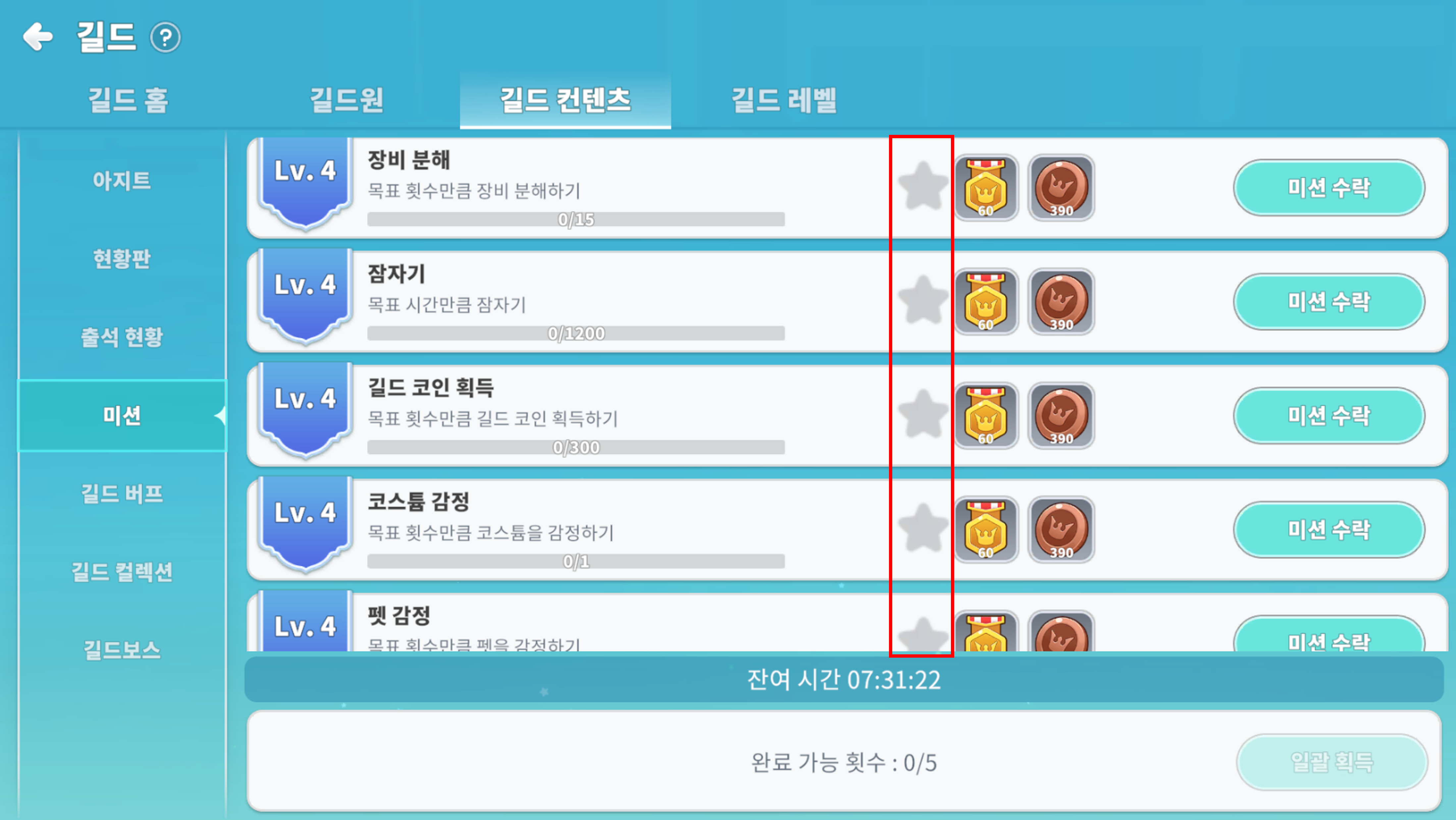 위 이미지처럼 기존 길드 미션 UI에 별 모양의 UI가 추가됩니다!