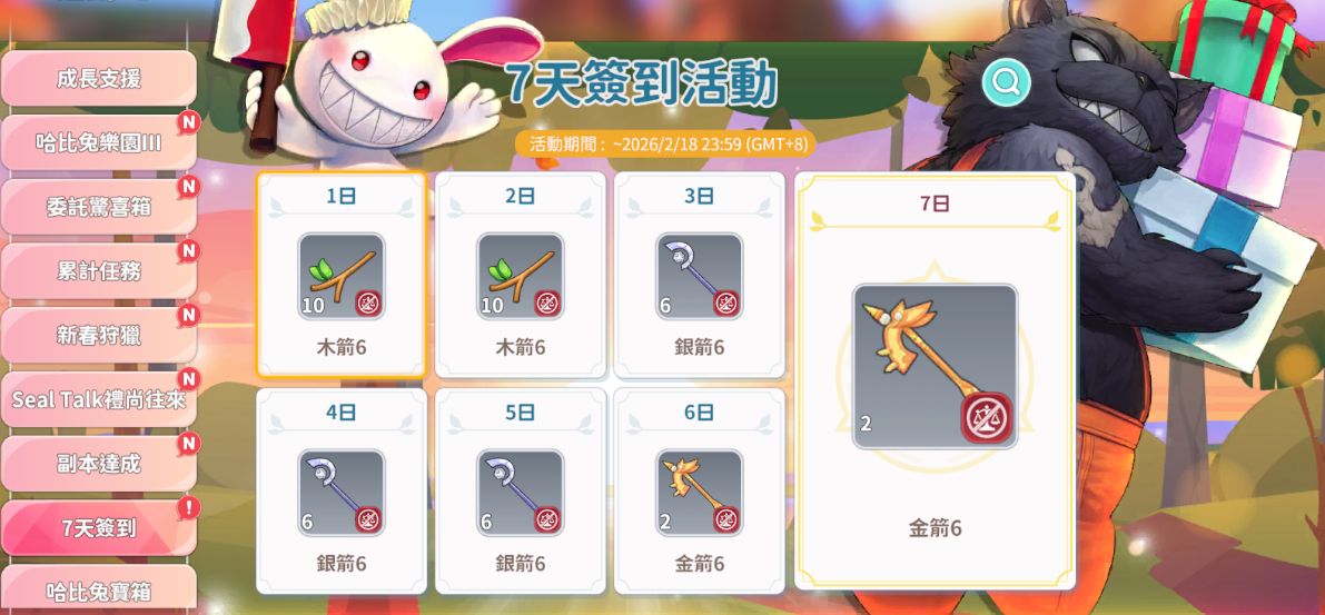 每日簽到可獲得遊戲內所需的道具。活動時間結束後沒有簽到的天數將不會另外補償。