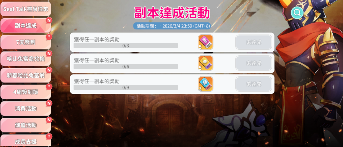 3. 活動獎勵每日初始化,需於每天0點後重登遊戲,再進行攻略副本,才會增加副本次數。