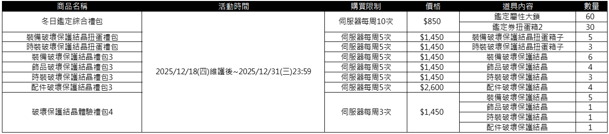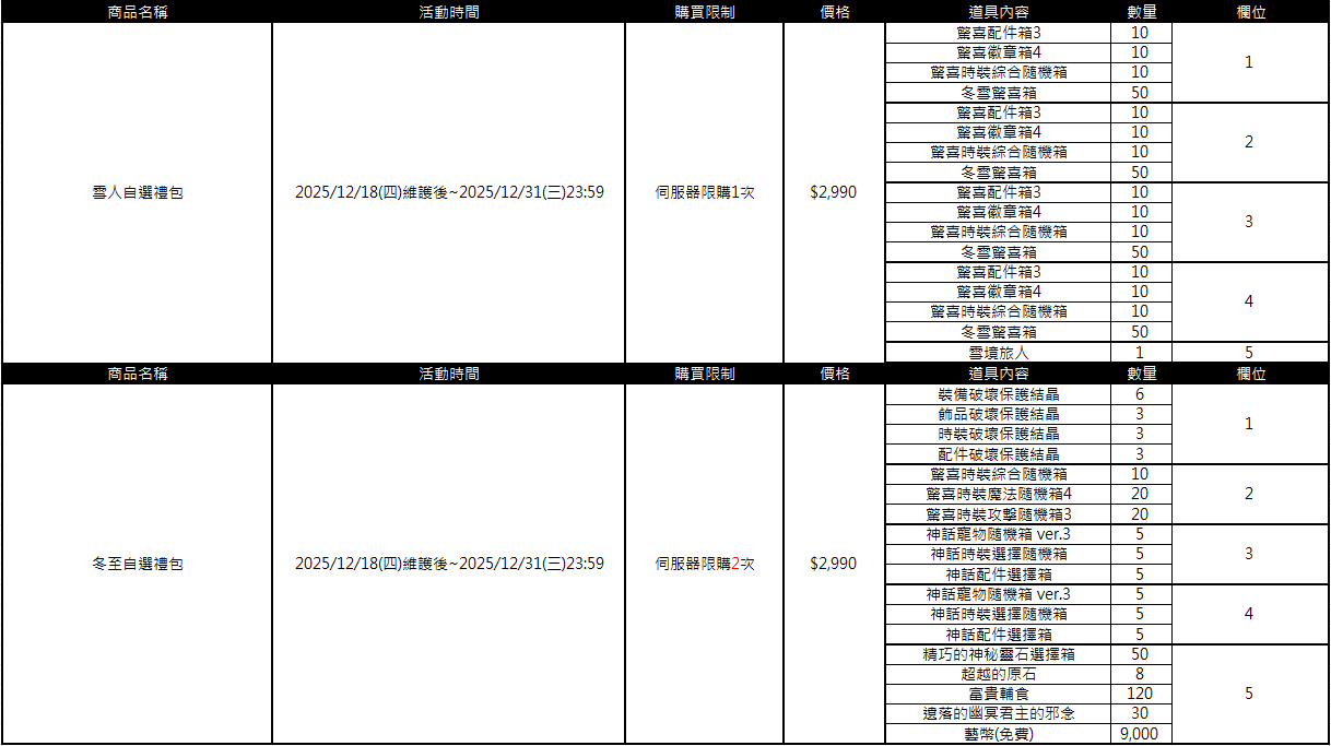 ■ 各禮包販售期限、售價及限購資訊: