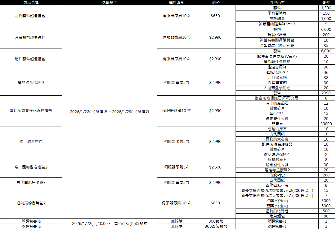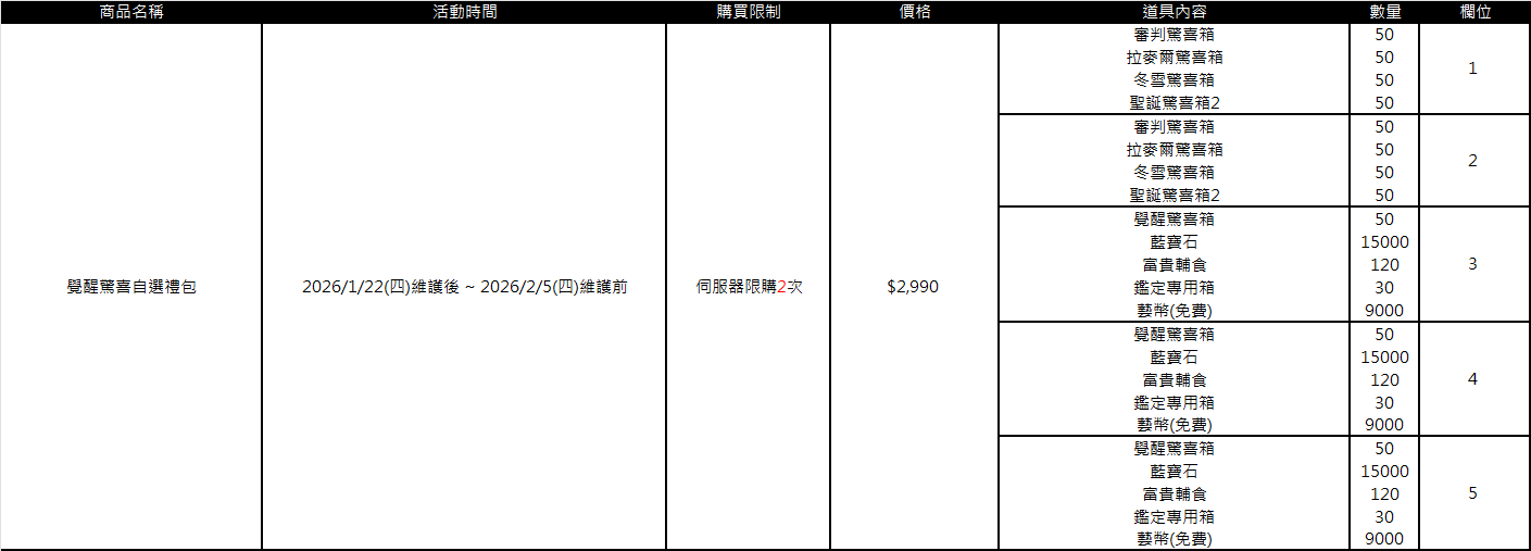 ■ 各禮包販售期限、售價及限購資訊:(點圖皆可放大)