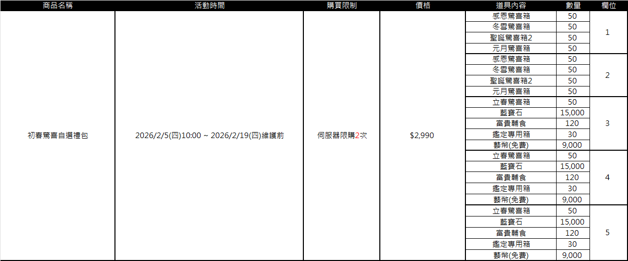■ 各禮包販售期限、售價及限購資訊:(點圖皆可放大)