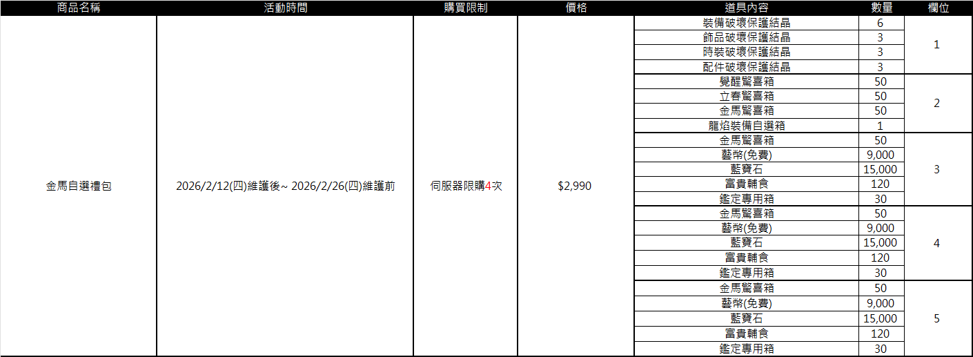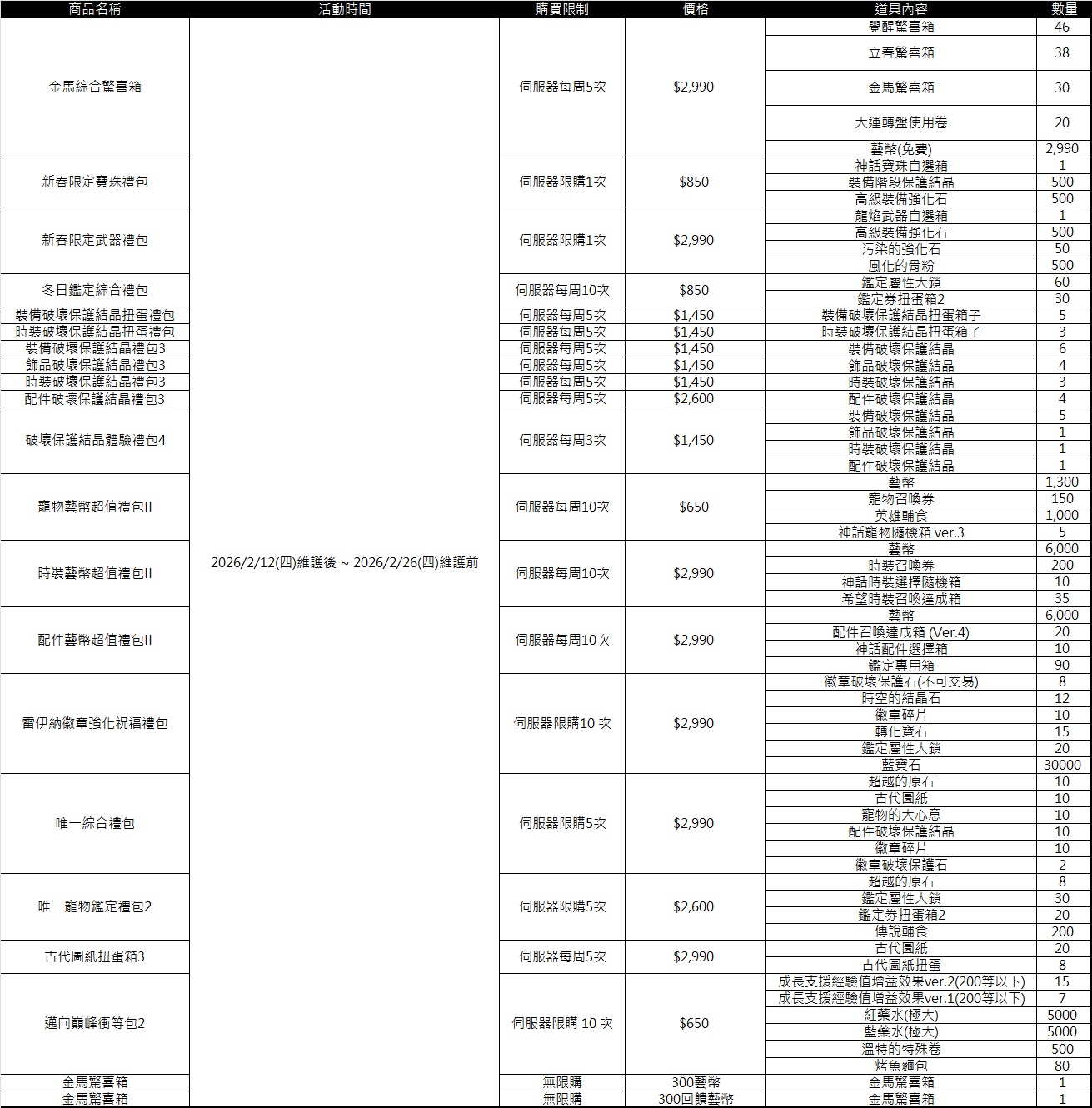 ■ 各禮包販售期限、售價及限購資訊:(點圖皆可放大)