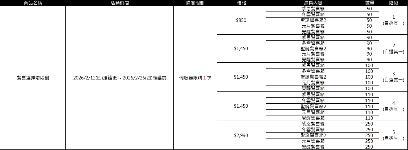 驚喜箱機率表 : https://community.withhive.com/sealm/zh-hant/board/37/530