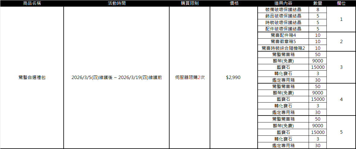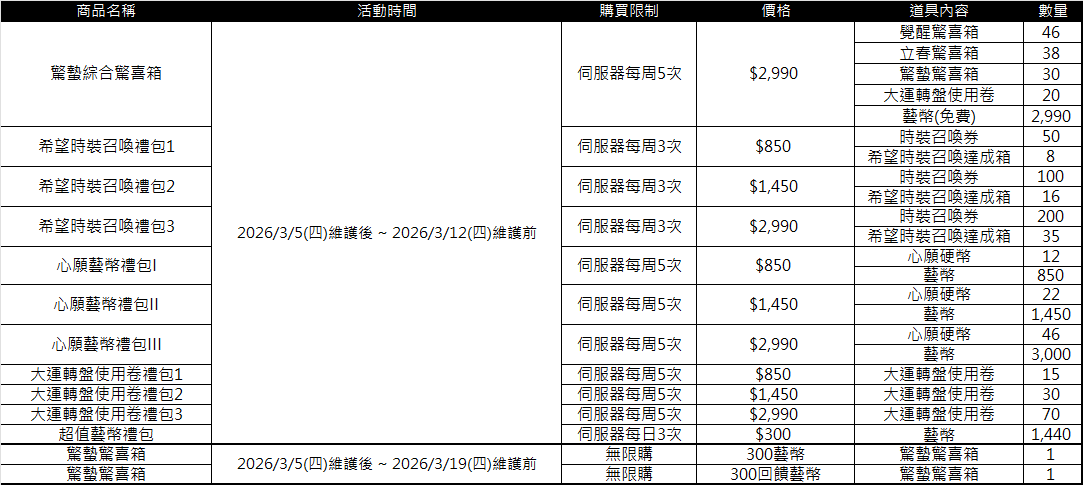 ■ 各禮包販售期限、售價及限購資訊:(點圖皆可放大)