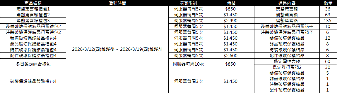 ■ 各禮包販售期限、售價及限購資訊:(點圖皆可放大)