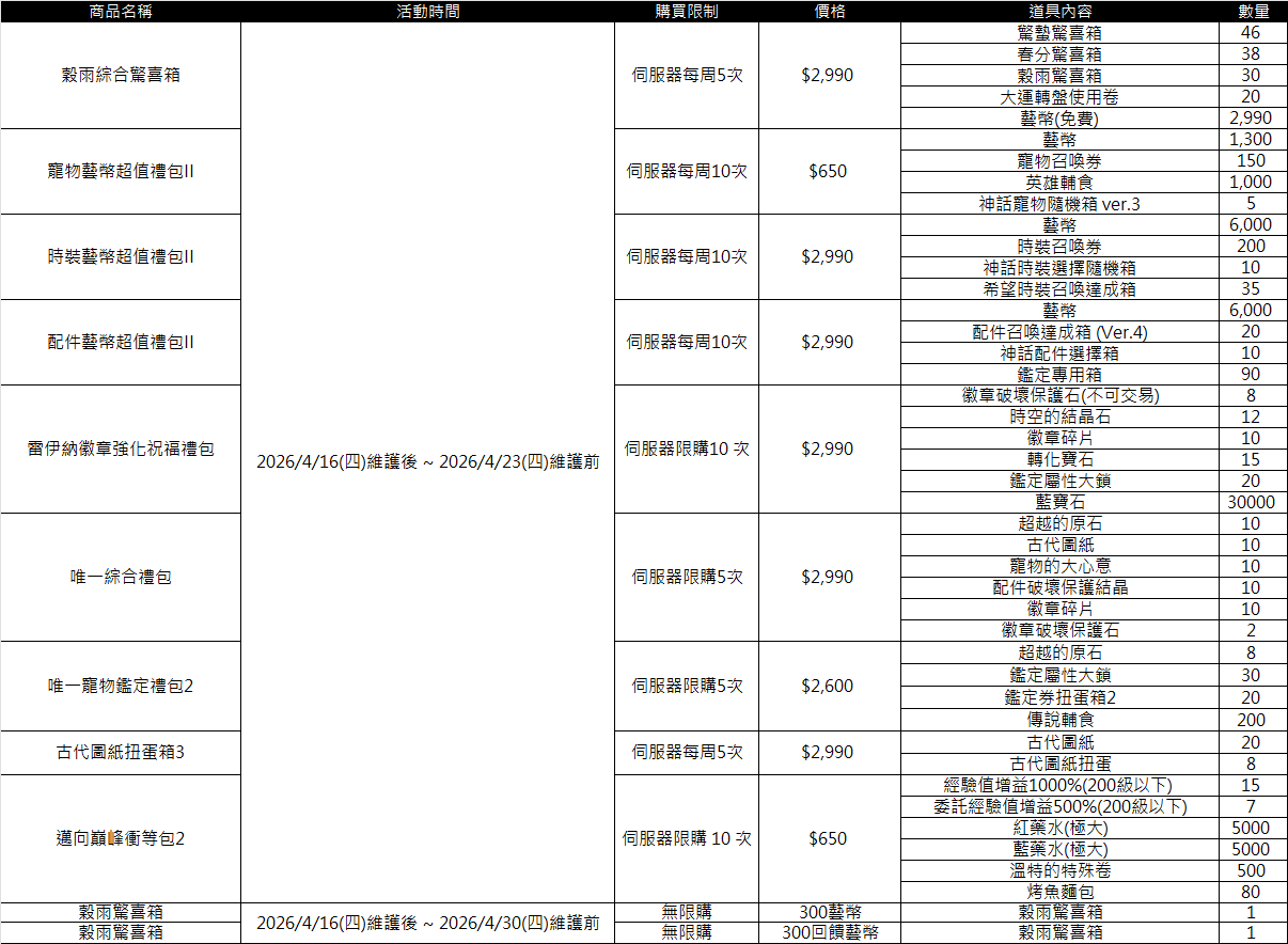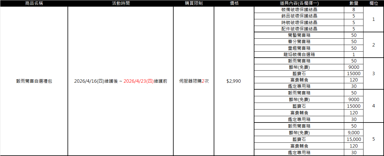 ■ 各禮包販售期限、售價及限購資訊:(點圖皆可放大)