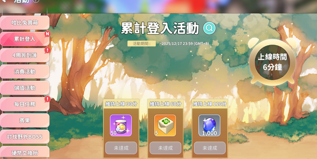 每日累計登入達指定時間,可獲得遊戲內所需的道具。