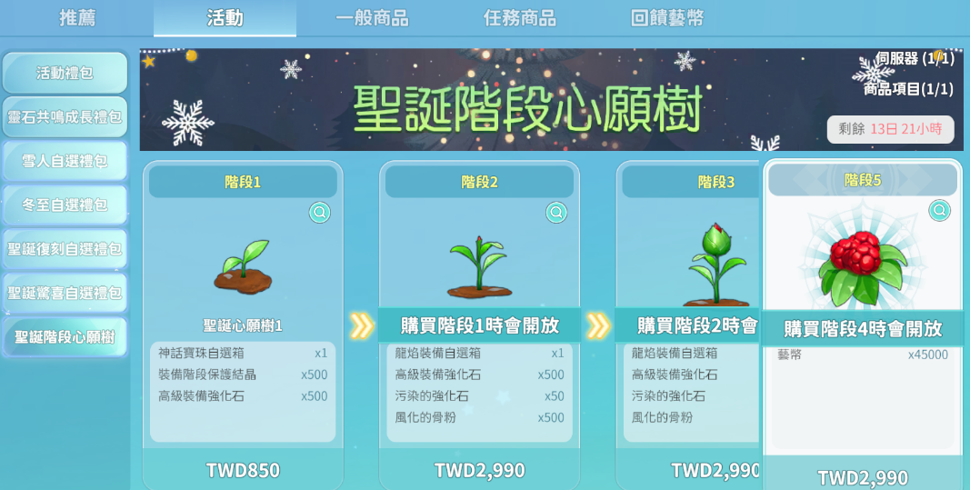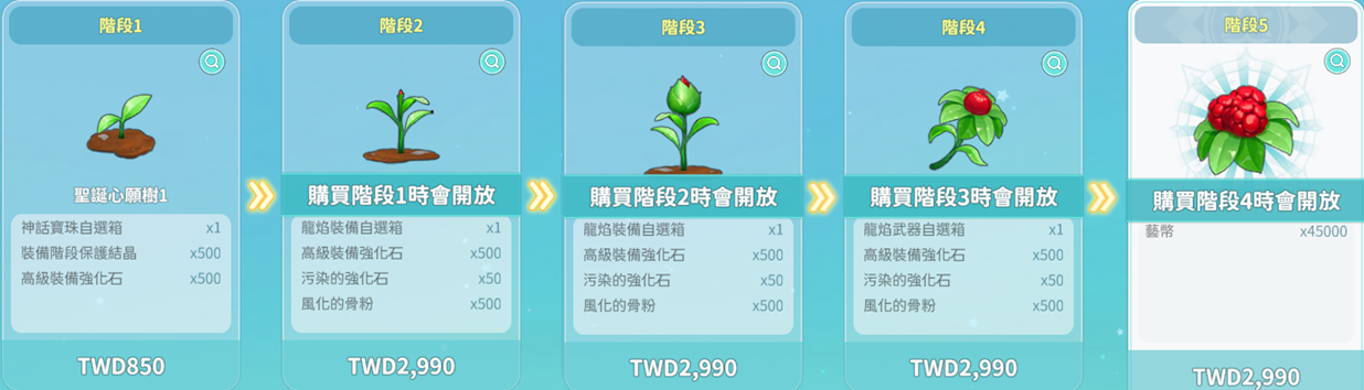 聖誕階段心願樹採階段式販售,購買下一階段商品前,須先完成前一階段商品之購買。