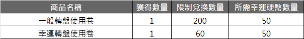 2. 幸運硬幣可兌換轉盤使用卷。