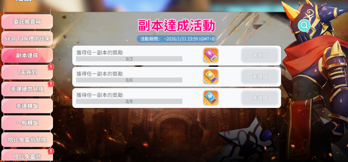 3. 活動獎勵每日初始化,需於每天0點後重登遊戲,再進行攻略副本,才會增加副本次數。