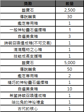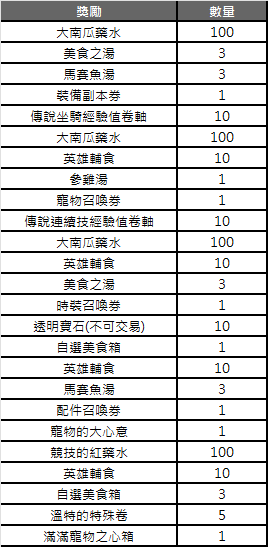 - 每場賓果盤的連線獎勵,將從以上16種獎勵中隨機出現12種