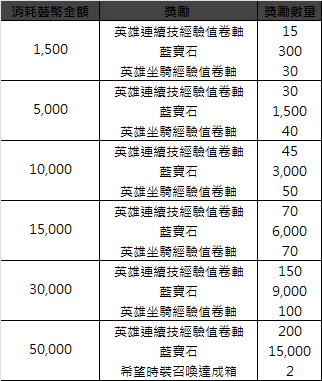 使用指定額度的藝幣時,可獲得遊戲內所需的道具。