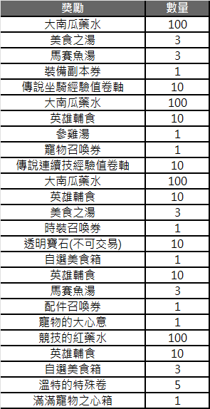 - 每場賓果盤的連線獎勵,將從以上16種獎勵中隨機出現12種