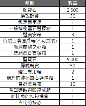 - 每使用賓果鑰匙,將隨機開啟任一號碼,將從以上20種獎勵中隨機出現其中1種