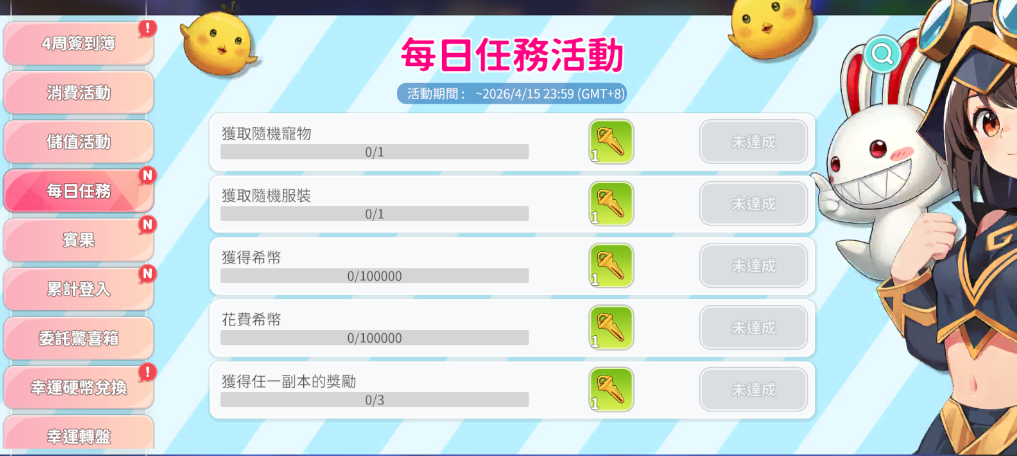 1. 玩家應確保在活動時間內領取所有活動獎勵,未領取以致道具消失將不另補償。